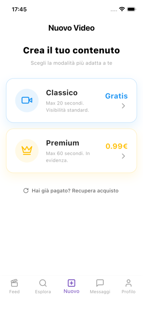 Registra direttamente in app o carica un video di 20 secondi per mostrare il tuo talento e lasciare il segno. Semplice, veloce, efficace.
